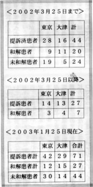 薬害ヤコブ病裁判の進行状況(2003年1月25日現在)